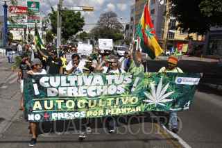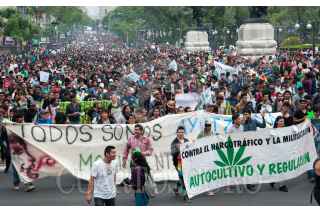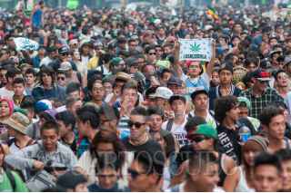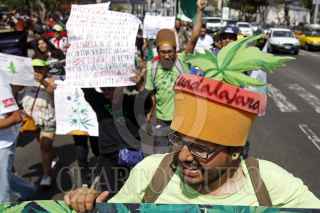 GUADALAJARA, JALISCO, 02MAYO2015.-A favor y a manera de protesta por la legalización de la marihuana en México, decenas de personas marcharon del parque rojo hasta Av. México donde se encuentra el monumento a la madre Patria, dicha marcha fue organizada por el Colectivo 4:20. FOTO: FERNANDO CARRANZA GARCIA / CUARTOSCURO.COM