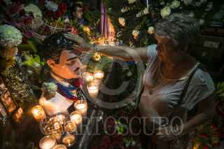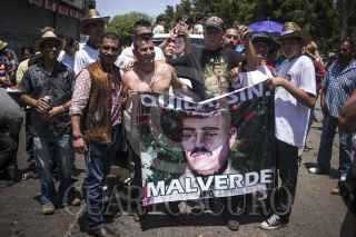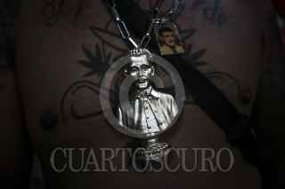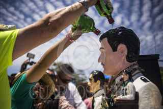 CULIACÁN, SINALOA, 03MAYO2015.- Cientos de creyentes de distintas partes de la República fieles a Jesús Malverde acudieron a festejar el 106 aniversario luctuoso de este santo polémico. El busto sale del templo que lo alberga para darle una vuelta en una camioneta mientras los creyentes bailan al ritmo de la banda y celebran con cerveza, después es devuelto a la capilla donde pedirán que se cumplan los milagros. FOTO: RASHIDE FRIAS /CUARTOSCURO.COM