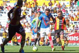 GUADALAJARA, JALISCO. 03MAYO2015.- El jugador de Leones Negros, Fidel Martínez se lamenta por las fallas durante el partido, esto en partido correspondiente a la Jornada 16 del Torneo Clausura 2015 de la Liga MX, en donde se enfrentaron los equipos del los Leones Negros de la Universidad de Guadalajara (U de G) frente a los Tiburones de Veracruz en partido que se jugó en el estadio Jalisco y en donde el marcador final fue de 2-1 a favor del equipo visitante. FOTO: FERNANDO CARRANZA GARCIA/CUARTOSCURO.COM