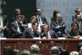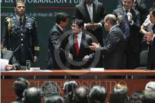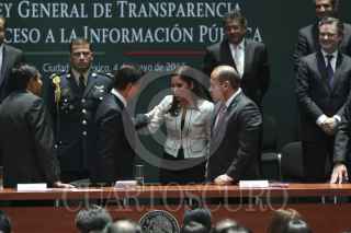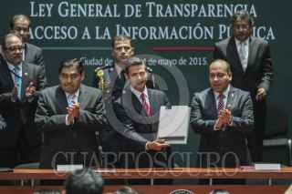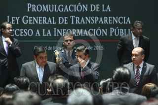 MÉXICO, D.F., 04MAYO2015.- El presidente Enrique Peña Nieto promulga la Ley General de Transparencia y Acceso a la Información Pública. Acompañado por miembros de su gabinete y representantes de los poderes Legislativo y Judicial, el mandatario federal firmó la promulgación de la ley. Dicha ley considera como sujetos obligados a los órganos autónomos, partidos, fideicomisos, fondos públicos, sindicatos. FOTO: ISABEL MATEOS /CUARTOSCURO.COM