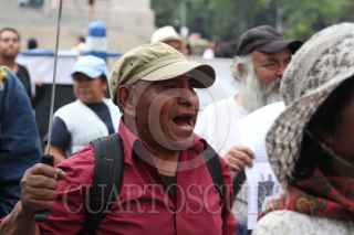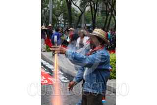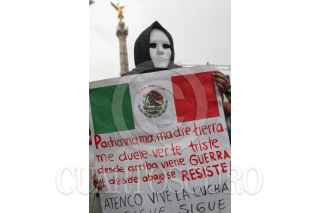 MÉXICO, D.F., 04MAYO2015.- Integrantes del Frente de Pueblos en Defensa de la Tierra, marcharon del Ángel de la Independencia al zócalo de la Ciudad de México para conmemorar 9 años de la represión en San Salvador Atenco y exigir paren las obras del nuevo aeropuerto. FOTO: SAÚL LÓPEZ /CUARTOSCURO.COM