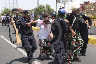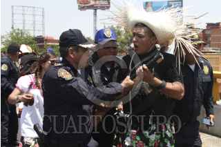 MÉXICO, D.F., 05MAYO2015.- Policías de la Ciudad de México detuvieron a un hombre que protagonizo una riña durante el desfile de la batalla del 5 de Mayo en las inmediaciones de la Aeropuerto Internacional de la Ciudad de México. FOTO: SAÚL LÓPEZ /CUARTOSCURO.COM