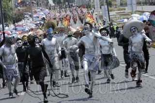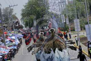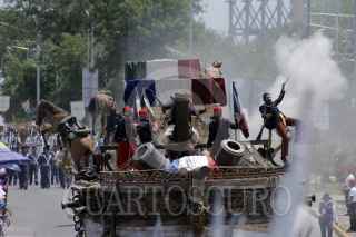 PUEBLA, PUEBLA, 05MAYO2015.- Contingentes escolares, carros alegóricos, caballería, militares, policía y demás cuerpos de seguridad y rescate, avanzaron a lo largo de la Calzada Zaragoza y Bulevard 5 de Mayo como parte del tradicional desfile conmemorativo a la batalla del 5 de Mayo. FOTO: HILDA RÍOS /CUARTOSCURO.COM