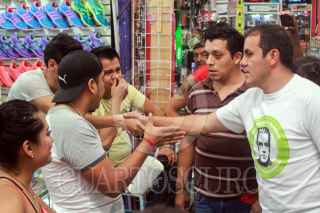 CUERNAVACA, MORELOS, 05MAYO2015.- El candidato a la presidencia municipal de Cuernavaca por el Partido Social Demócrata (PSD), Cuauhtémoc Blanco, visitó los locales de la Plaza Lido, saludó a los comerciantes, se tomó fotos recorrió pasillos antojitos donde le ofrecieron tacos y aguas frescas. FOTO: PATRICIA MORALES / CUARTOSCURO.COM