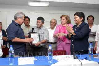 VILLAHERMOSA, TABASCO, 26ABRIL2006.- El Secretario de Educación Pública en el Estado, Walter Ramírez Izquierdo, recibió un reconocimiento por apoyar a la PGR Delegación Tabasco en el programa preventivo "Con la Educación, Éntrale a la Prevención". FOTO: Marco Polo Guzmán/CUARTOSCURO.COM