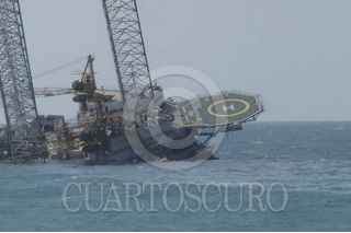 CAMPECHE, CAMPECHE, 05MAYO2015.- Petróleos Mexicanos informó que dos trabajadores murieron después de que la plataforma autoelevable de mantenimiento Troll Solution, instalada frente a las costas de Campeche. La empresa dijo, mediante un comunicado, que falló una de las piernas de dicha plataforma y en la cual estaban a bordo 98 trabajadores de la empresa Typhoom Offshore y otros tres trabajadores de Pemex. Pemex puntualizó dijo que el accidente no afecta la producción por tratarse de una plataforma móvil dedicada al mantenimiento de pozo. FOTO: @Joseluis_hs /CUARTOSCURO.COM