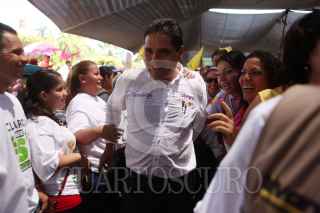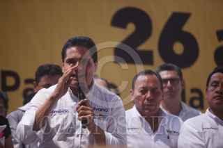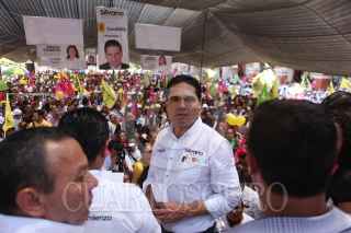 APATZINGÁN, MICHOACÁN, 05MAYO2015.- Silvano Aureoles Conejo, candidato a Gobernador por el partido de la Revolución Democrática, realizó acto masivo a las afueras de Palacio Municipal festejando el 26 aniversario del partido de izquierda. FOTO: ALAN ORTEGA / CUARTOSCURO.COM