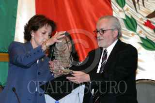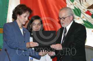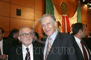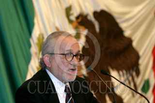 MEXICO, D.F., 26ABRIL2006.- Jesús Blancornelas, director del semanario Z de Tijuana, recibió un reconocimiento por su trayectoria por parte de la Cámara de Diputados. En la imagen lo acompaña Diego Valadez, academico de la UNAM. FOTO: Moisés Pablo/CUARTOSCURO.COM