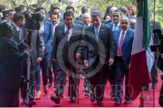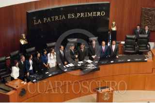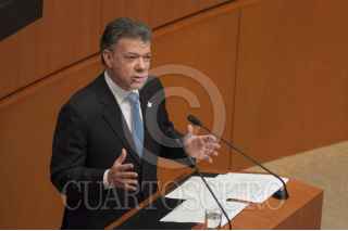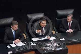 MÉXICO, D.F., 08MAYO2015.- Juan Manuel Santos, presidente de Colombia, Miguel Barbosa Huerta, presidente de la Mesa Directiva del Senado, y José Antonio Meade, Secretario de Relaciones Exteriores, durante la sesión solemne de la Comisión Permanente del Congreso de la Unión en el Senado de la República. FOTO: DIEGO SIMÓN SÁNCHEZ /CUARTOSCURO.COM