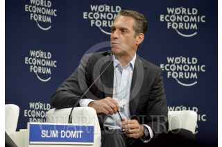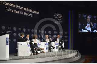 SOLIDARIDAD, QUINTANA ROO, 08MAYO2015.- Angélica Fuentes, presidenta de la asociacion del mismo nombre , Carlos Slim Domit y el premio nobel de economía Joseph Stiglitz durante el cierre del foro económico mundial para America latina 2015 que termina el día hoy. FOTO: ELIZABETH RUIZ /CUARTOSCURO.COM