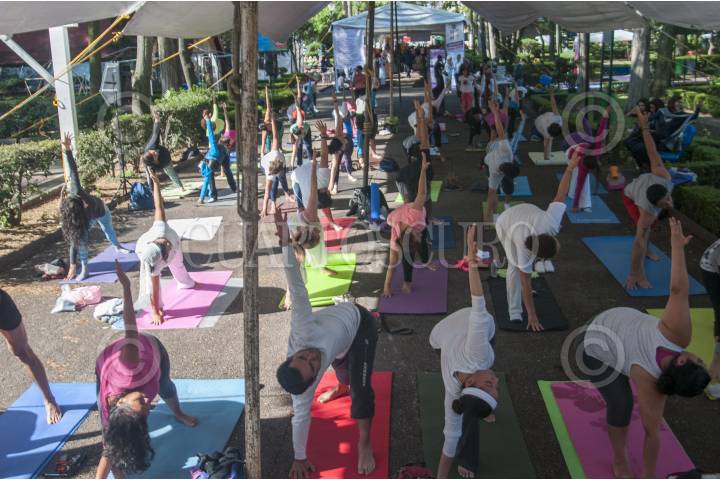 MÉXICO, D.F., 09MAYO2015.- La organización Yoga en tu Barrio, que tiene como propósito difundir y promover el bienestar a través de actividades de yoga en espacios públicos de manera gratuita, organizó clases masivas de dicha disciplina en el parque de Las Arboledas en la colonia del Valle, como una actividad para celebrar a las madres en su día. FOTO: DIEGO SIMÓN SÁNCHEZ /CUARTOSCURO.COM