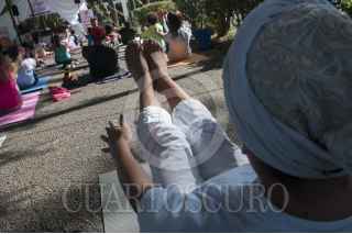 MÉXICO, D.F., 09MAYO2015.- La organización Yoga en tu Barrio, que tiene como propósito difundir y promover el bienestar a través de actividades de yoga en espacios públicos de manera gratuita, organizó clases masivas de dicha disciplina en el parque de Las Arboledas en la colonia del Valle, como una actividad para celebrar a las madres en su día. FOTO: DIEGO SIMÓN SÁNCHEZ /CUARTOSCURO.COM