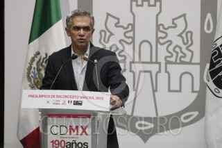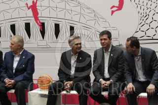 MÉXICO, D.F., 09MAYO2015.- Miguel Ángel Mancera, Jefe de Gobierno, Alfredo Castillo, presidente de la Conade y Horacio de la Vega, secretario del Deporte del DF, durante el anuncio del Preolímpico de Baloncesto Varonil 2015 rumbo a los Juegos de Río 2016, que se realizará en el Palacio de los Deportes. FOTO: MOISÉS PABLO /CUARTOSCURO.COM