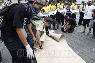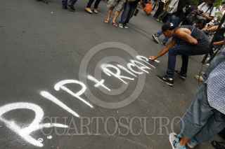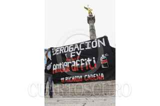 MÉXICO, D.F., 09MAYO2015.- Jóvenes graffiteros marcharon del metro Sevilla al Ángel de la Independencia para protestar y exigir justicia por la muerte de Ricardo Cadena por realizar pintas en Cholula, Puebla así como en contra de la Ley Bala y Ley Antigrafffiti las cuales criminalizan a la juventud. FOTO: RODOLFO ANGULO /CUARTOSCURO.COM