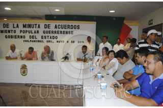 CHILPANCINGO, GUERRERO, 09MAYO2015.- El gobernador sustituto Rogelio Ortega Martínez firmo una minuta de acuerdos con el Movimiento Popular Guerrerense (MPG), en la que se compromete a darle solución a las demandas del movimiento magisterial que encabeza Antonia Morales y de las organizaciones sociales. El gobernador al firmar señalo que “Sin ninguna condición; si quieren seguir en su plantón que sigan” y los profesores y líderes de organizaciones, dicen que la lucha continua y las movilizaciones, evento que se llevó acabo en la sala Ignacio Manuel Altamirano del palacio de gobierno. El ejecutivo estuvo acompañado de Salvador Martínez della Rocca quien un día antes presento su renuncia que no fue aceptada y continua como secretario de educación en Guerrero. FOTO: JOSÉ I. HERNÁNDEZ / CUARTOSCURO.COM