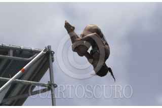 COZUMEL, QUINTANA ROO, 09MAYO2015.- En el Faro de Caletita se instaló la impresionante torre donde se desarrolla la Segunda Copa del Mundo de Clavados de Altura FINA Cozumel 2015. Estas primeras tres rondas dejaron un saldo favorable para los clavadistas mexicanos, quienes se clasificaron a la gran final, que se desarrollará mañana domingo en este mismo escenario. FOTO: ELIZABETH RUIZ /CUARTOSCURO.COM