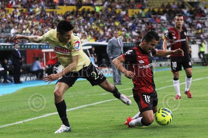 GUADALAJARA, JALISCO. 09MAYO2015.- El jugador del América Paul Aguilar, celebra su anotación en el partido, esto en partido correspondiente a la Jornada 17 del Torneo Clausura 2015 de la Liga MX, en donde se enfrentan los equipos de los Zorros del Atlas frente a las Águilas del América, en partido que se juega en el Estadio Jalisco. FOTO: FERNANDO CARRANZA GARCIA / CUARTOSCURO.COM