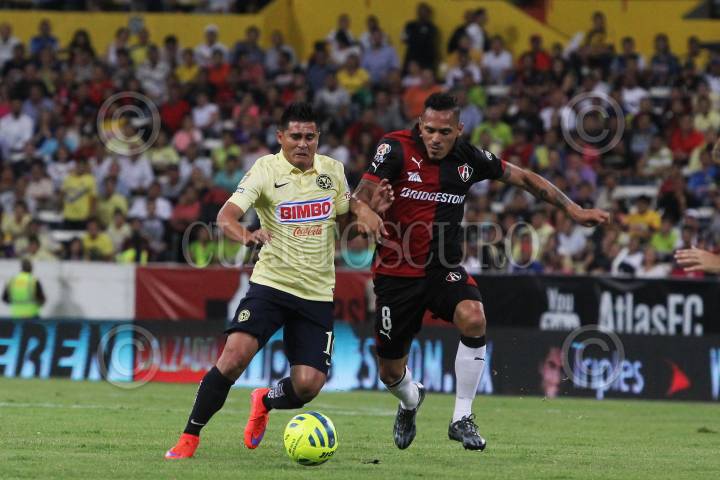 GUADALAJARA, JALISCO. 09MAYO2015.- El jugador del América Paul Aguilar, celebra su anotación en el partido, esto en partido correspondiente a la Jornada 17 del Torneo Clausura 2015 de la Liga MX, en donde se enfrentan los equipos de los Zorros del Atlas frente a las Águilas del América, en partido que se juega en el Estadio Jalisco. FOTO: FERNANDO CARRANZA GARCIA / CUARTOSCURO.COM