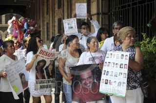 CUERNAVACA, MORELOS, 10MAYO2015.- Madres de personas desaparecidos por la violencia e inseguridad registrados en el país, marcharon del Calvario al altar de Víctimas del Palacio de Gobierno, donde llevaron fotografías de sus hijos, flores y gritaron consignas de justicia. FOTO: PATRICIA MORALES /CUARTOSCURO.COM