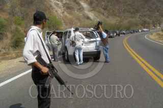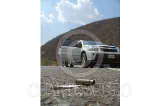 CHILPANCINGO, GUERRERO 26ABRIL2006.- Uno de varios casquillos percutidos de AK-47 conocido como "Cuerno de Chivo" quedaron sobre la carretera federal Chilpancingo-Iguala a la altura del punto conocido como "La Cañada del Zopilote", luego de que sujetos desconocidos se enfrentaran a balazos con elementos de la policia investigadora ministerial del estado, al marcarles estos ultimos el alto, para revisar la camioneta Chevrolet Equinox con placas del Estado de Mexico, la cual estaba reportada como robada. FOTO: Oscar Alvarado/CUARTOSCURO.COM