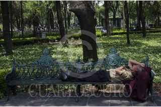MÉXICO, D.F., 10MAYO2015.- Cinco minutos de sueño se necesitan de vez en cuando, en cuanto un parque se disponga a recibir a quien desee conciliar el sueño durante una tarde calurosa. FOTO: MARÍA JOSÉ MARTÍNEZ /CUARTOSCURO.COM