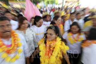 HUEHUETAN, GUERRERO, 10MAYO2015.- En su visita a la tierra natal de su madre, a la candidata a gobernadora de Guerrero por la alianza PRD-PT, Beatriz Mojica Morga, se le humedecieron los ojos al hablar sobre su infancia y al asegurar que su progenitora nunca les permitió que olvidarán a su pueblo; al momento de recordar sus vivencia infantiles, abrazó con fuerza a doña Petra Morga y finalmente le entregó un ramo de flores por el Día de la Madre. FOTO: BERNANDINO HERNÁNDEZ /CUARTOSCURO.COM