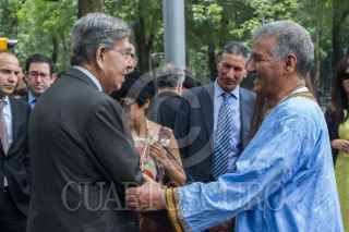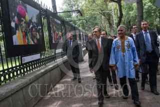 MÉXICO, D.F., 11MAYO2015.- Cuauhtémoc Cárdenas, coordinador de Asuntos Internacionales del GDF, y Ahmed Mulay Ali, embajador Saharaui en nuestro país, inauguraron la exposición de la Feria de las Culturas Amigas en las rejas del Bosque de Chapultepec. FOTO: ISAAC ESQUIVEL /CUARTOSCURO.COM