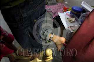 VERACRUZ, VERACRUZ, 11MAYO2015.- Autoridades rescataron a un menor de doce años de edad que era encadenado por sus padres durante gran parte del día. En la pequeña vivienda también se encontraban sus hermanos de seis y tres años de edad, los cuales eran dejados sin alimento, constantemente por sus familiares. El caso fue denunciado por vecinos de la colonia Jardines de Santa Fe, al norte de la ciudad de Veracruz.Los menores fueron trasladados al sistema DIF del estado y se procederá penalmente en contra de sus progenitores. FOTO: FÉLIX MÁRQUEZ / CUARTOSCURO.COM
