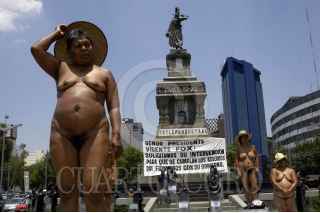 MEXICO, D.F. 26ABRIL2006.- Nuevamante una centena de integrantes de el Movimiento de los 400 Pueblos se volvieron a desnudar en la avenida Reforma exigiendo apoyo ciudadano y la intervención de Fox en el cumplimiento de los acuerdos firmados. FOTO: Demián Chavez/CUARTOSCURO.COM