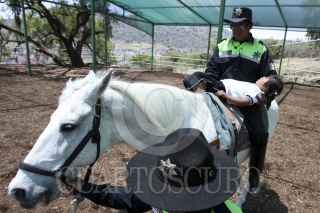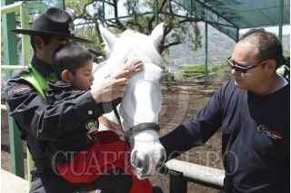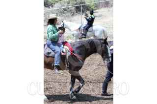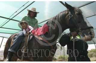 ECATEPEC, EDOMEX, 12MAYO2015.- Niños y adolescentes con discapacidad han mejorado su calidad de vida a través de la atención que reciben en el Centro de Equino terapia, instalado dentro del Parque Ehécatl, en Ecatepec. Como resultado de las terapias ecuestres, Naroli de 2 años ha desarrollado su capacidad de convivencia, ha mejorado su lenguaje y corregido la postura de su pierna derecha, que durante su primer año le impedía dar sus primeros pasos. FOTO: DIEGO REYES /CUARTOSCURO.COM
