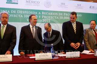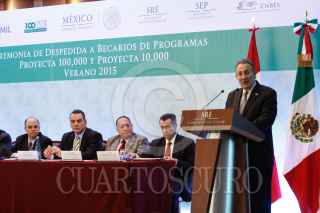 MÉXICO, D.F., 13MAYO2015.- Anthony Wayne, embajador de Estados Unidos; Sergio Alcocer, subsecretario para América del Norte y Pierre Alarie, embajador designado de Canadá durante la Ceremonia de Despedida a Becarios de Programas Proyecta 100,000 y Proyecta 10,000 Verano 2015 que se realizó en la Secretaria de Relaciones Exteriores. FOTO: RODOLFO ANGULO /CUARTOSCURO.COM