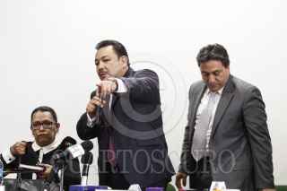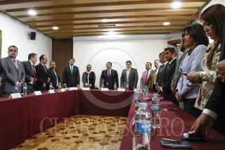 MÉXICO, D.F., 14MAYO2015.- Héctor Serrano, secretario de Gobierno del Distrito Federal y Mario Velazquez, consejero presidente del Instituto Electoral del Distrito Federal acompañados de 10 jefes delegacionales sostuvieron una reunión en donde analizaron temas relacionados con la veda electoral. FOTO: RODOLFO ANGULO /CUARTOSCURO.COM