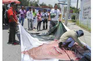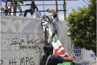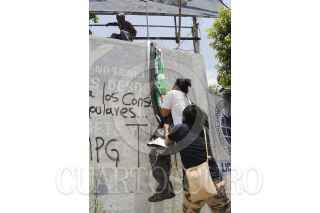 CHILPANCINGO, GUERRERO, 14MAYO2015.- Padres de los 43 desaparecidos de Ayotzinapa marcharon de la Avenida Juárez esquina con Ignacio Ramírez, con dirección al Palacio de Gobierno; en el trayecto retiraron propaganda electoral. Cabe destacar que ninguna organización social o integrantes de la CETEG participaron en la manifestación. Felipe de la Cruz, vocero del comité de padres de familia, mencionó que “el mitin es para recordar que Rogelio Ortega es un títere del gobierno federal”. FOTO: JOSÉ I. HERNÁNDEZ /CUARTOSCURO.COM