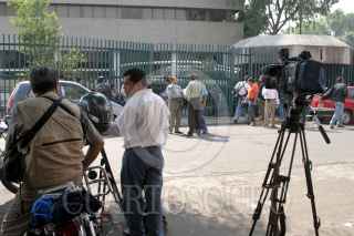 MEXICO, D.F., 27ABRIL2006.- Reporteros y camarográfos se quedaron esperando una imagen y declaración del gobernador Mario Marín, que compareció ante la PGR por el caso Lydia Cacho. El llamado gober precioso se escabulló evitando cualquier declaración. FOTO: Moisés Pablo/CUARTOSCURO.COM