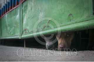 MÉXICO, D.F., 15MAYO2015.- La mirada tímida de dos perros asomados desde su casa atestiguan el tránsito callejero cotidiano de la delegación Xochimilco. FOTO: DIEGO SIMÓN SÁNCHEZ /CUARTOSCURO.COM
