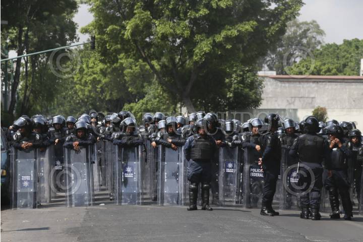 MÉXICO, D.F., 15MAYO2015.- Maestros de diversas secciones de la CNTE y SNTE, marcharon de la SEGOB hacia el zócalo de la Ciudad de México. al rededor de las 15:00 horas policías antimotines de la SSP-DF les impidieron el paso frente al palacio de Bellas Artes. Los líderes de los docentes determinaron realizar un mitin sobre la avenida Juárez después que granaderos les impidieran el paso. FOTO: SAÚL LÓPEZ /CUARTOSCURO.COM