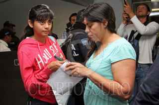 TLAJOMULCO DE ZUÑIGA, JALISCO. 16MAYO2015.-Después de una larga audiencia el día de ayer en el estado de Michoacán y tras completar las pruebas genéticas que confirman que la señora Dorotea es la madre biológica de la niña Alondra, arriban esta madrugada al Aeropuerto Internacional Miguel Hidalgo de la ciudad de Guadalajara para viajar a Houston, Texas, Estados Unidos. FOTO: FERNANDO CARRANZA GARCIA / CUARTOSCURO.COM