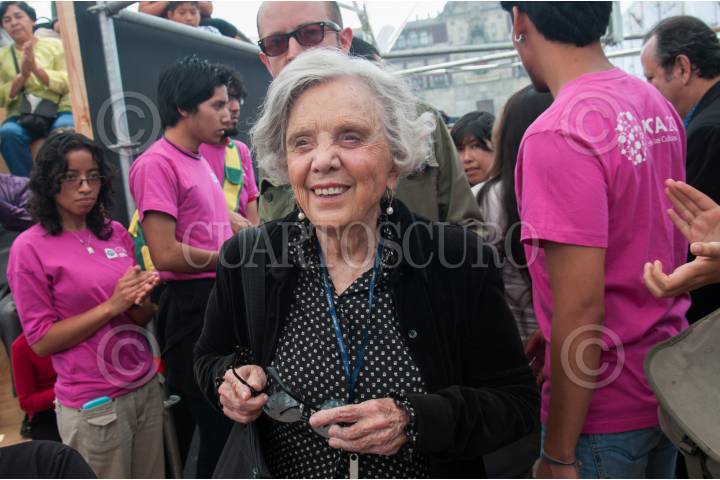 MÉXICO, D.F., 16MAYO2015.- La escritora Elena Poniatowska visitó la Feria de las Culturas Amigas en el zócalo capitalino para dar una conferencia sobre la artista Leonora Carrington. FOTO: DIEGO SIMÓN SÁNCHEZ /CUARTOSCURO.COM