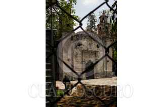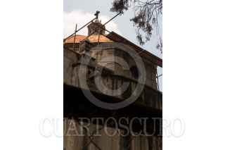MEXICO, D.F., 16MAYO2015.- En días pasados, escritores e intelectuales, Margo Glantz y Luis Villoro entre ellos, enviaron una misiva a Rafael Ruiz de Tovar, presidente de la Conaculta, para manifestarle su preocupación por el aparente estado de abandono en las obras de restauración del Templo de la Concepción en Coyoacán. Este inmueble es cconsiderado de gran valor arquitectónico, religioso e incluso arqueológico, ya que mandado edificar por Hernán Cortés en el siglo XVI y en excavaciones recientes se han hallado vestigios prehispánicos. Por el momento el sitio se halla cercado y se observan andamios en los muros y cúpulas. FOTO: DAVID POLO /CUARTOSCURO.COM