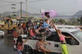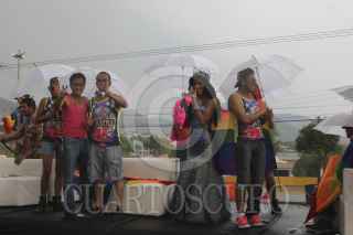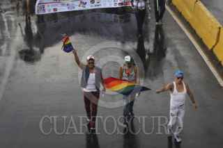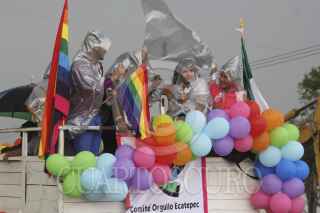 ECATEPEC, EDOMEX, 16MAYO2015.- Decenas de integrantes de la comunidad lesbico-gay caminaron durante la marcha denominada "Orgullo y Respeto a la Diversidad Sexual" sobre la avenida Vía Morelos en Tulpetlac hasta el Palacio Municipal en San Cristóbal Centro, exigiendo la igualdad de derechos, a pesar de la intensa lluvia continuaron hasta llegar a la Explanada Cívica. FOTO: DIEGO REYES /CUARTOSCURO.COM