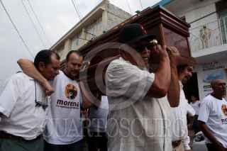YURÉCUARO, MICHOACÁN, 16MAYO2015.- Enrique Hernández, candidato de Morena a la alcaldía de Yurécuaro, y ex líder de los grupos de autodefensa de este municipio; fue sepultado la tarde de hoy despues de que se le realizó un homenaje de cuerpo presente en la plaza principal del pueblo y una misa. El cuerpo del candidato fue acompañado por cientos de personas al panteón municipal. FOTO: ALAN ORTEGA /CUARTOSCURO.COM