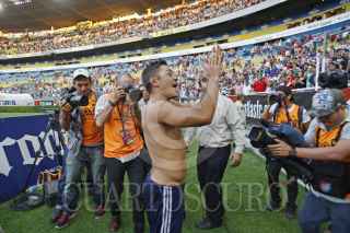 GUADALAJARA, JALISCO. 17MAYO2015.- El jugador de Chivas Carlos Salcedo celebra con la barra de Chivas la victoria de 4-1, esto en partido correspondiente a la vuelta de los Cuartos de Final del Torneo Clausura 2015 de la Liga MX, en donde se enfrentan los equipos de las Chivas de Guadalajara frente a las los Zorros del Atlas , en partido que se juega en el Estadio Jalisco. FOTO: FERNANDO CARRANZA GARCIA / CUARTOSCURO.COM
