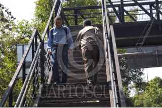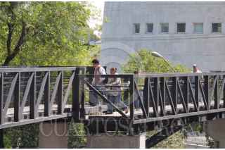 MÉXICO, D.F., 18MAYO2015.- Personas cruzan un puente peatonal sobre avenida Periférico. Este tipo de cruces puede ser blanco fácil para los asaltantes, en la actualidad no importa la hora, aunque los robos suelen ser más propensos durante la noche. FOTO: DIEGO SIMÓN SÁNCHEZ /CUARTOSCURO.COM