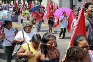 CUERNAVACA, MORELOS, 18MAYO2015.- Antorchistas del Estado de Morelos marcharon por las calles del centro, lo que afectó la circulación de los automóviles. Protestaron debido a la falta de cumplimiento de las demandas exigidas y firmadas el mes pasado con el gobierno del estado. FOTO: PATRICIA MORALES /CUARTOSCURO.COM