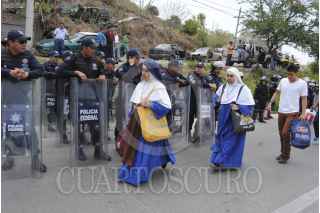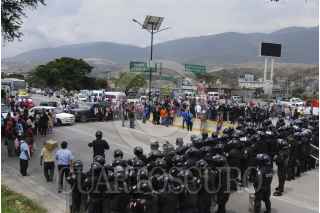 CHILPANCINGO, GUERRERO, 19MAYO2015.- Comisarios y habitantes de diferentes comunidades que conformaron la Organización de Colonias y Comunidades de Chilpancingo, marcharon de la colonia la Cinca con dirección al norte de la ciudad llegaron al Parador del Márquez donde bloquearon por espacio de dos horas la autopista del sol y la carretera libre, para exigir a Sedatu el cumplimiento de acuerdos firmados en una minuta de hace cinco meses, policías federales dialogaron con los manifestantes para retirar el bloqueo. FOTO: JOSÉ I. HERNÁNDEZ /CUARTOSCURO.COM