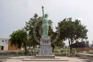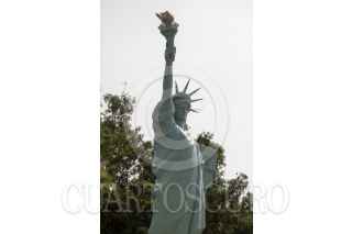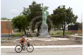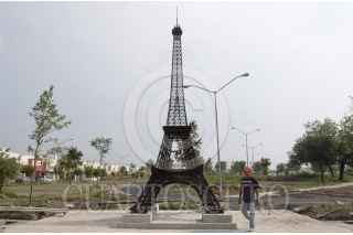 APODACA, NUEVO LEÓN, 19MAYO2015.- Como parte de un proyecto cultural-deportivo, Una réplica de la Estatua de la Libertad y otra de la Torre Eiffel en escala local fueron colocadas en una plaza del municipio de Apodaca, en donde se estima una inversión de 20 millones de pesos por la creación del deportivo y remodelación de la plaza. FOTO: GABRIELA PÉREZ MONTIEL / CUARTOSCURO.COM