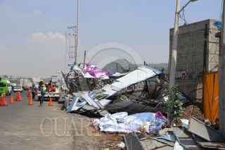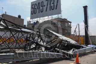 MÉXICO, D.F., 20MAYO2015.- Debido a los fuertes vientos un espectacular cayó y tiró cables de luz y daño viviendas en la lateral de la autopista México-Puebla a la altura del kilómetro 22.5 FOTO: SAÚL LÓPEZ /CUARTOSCURO.COM