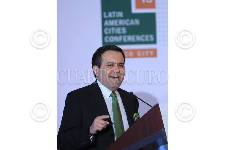 MÉXICO, D.F., 21MAYO2015.- Luis Videgaray, secretario de Hacienda y Crédito Público, durante su intervención en el foro "México: panorama sobre el cambio climático, seguridad cibernética y energía en América del Norte" organizado por Americas Society/Council of the Americas (AS/COA), encuentro realizado en la sede de la cancillería. FOTO: MOISÉS PABLO /CUARTOSCURO.COM