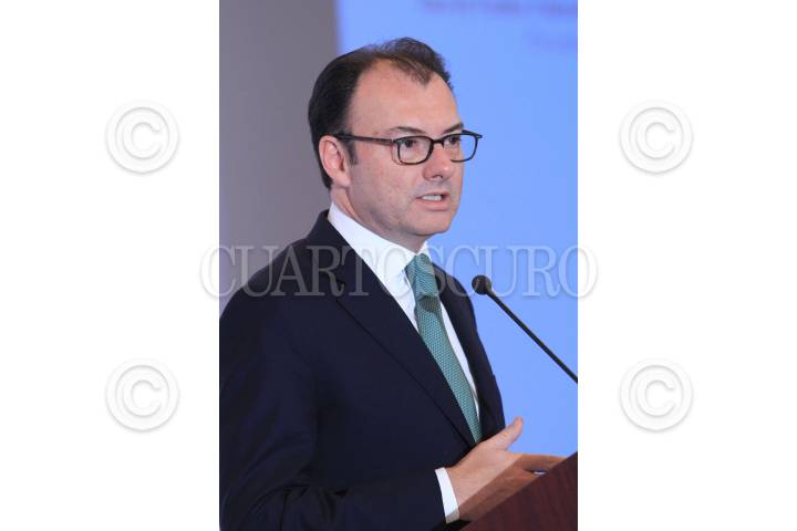 MÉXICO, D.F., 21MAYO2015.- Luis Videgaray, secretario de Hacienda y Crédito Público, durante su intervención en el foro "México: panorama sobre el cambio climático, seguridad cibernética y energía en América del Norte" organizado por Americas Society/Council of the Americas (AS/COA), encuentro realizado en la sede de la cancillería. FOTO: MOISÉS PABLO /CUARTOSCURO.COM
