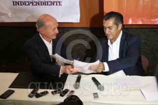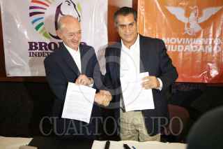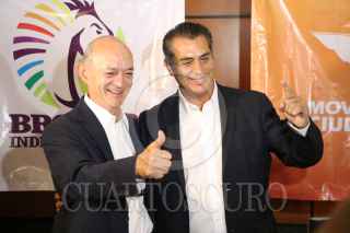 MONTERREY, NUEVO LEÓN, 21MAYO2015.- Los candidatos Fernando Elizondo y Jaime Rodríguez firmaron hoy la “Alianza por la Grandeza de Nuevo León”, donde se comprometen a unir fuerzas para ganar la elección del 7 de junio. Con esta decisión, Elizondo renuncia a su candidatura para no dividir el voto por la alternativa ciudadana y aumentar la posibilidad de lograr para Nuevo León un cambio histórico con la conformación de un gobierno eficaz, eficiente y austero, comprometido con el bien común. Elizondo se compromete a apoyar desde ahora la campaña de Jaime Rodríguez, “El Bronco”, y este a su su vez apoyará a todos los candidatos a Alcaldías y diputaciones locales y federales postulados por Movimiento Ciudadano. FOTO: CUARTOSCURO.COM